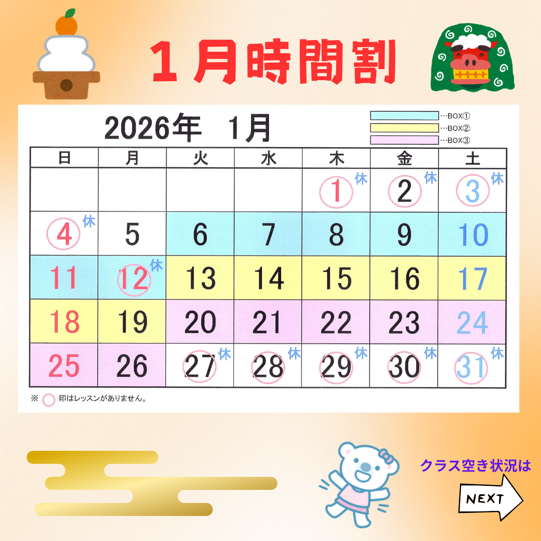 2026年1月のコペル川口教室のレッスンスケジュ